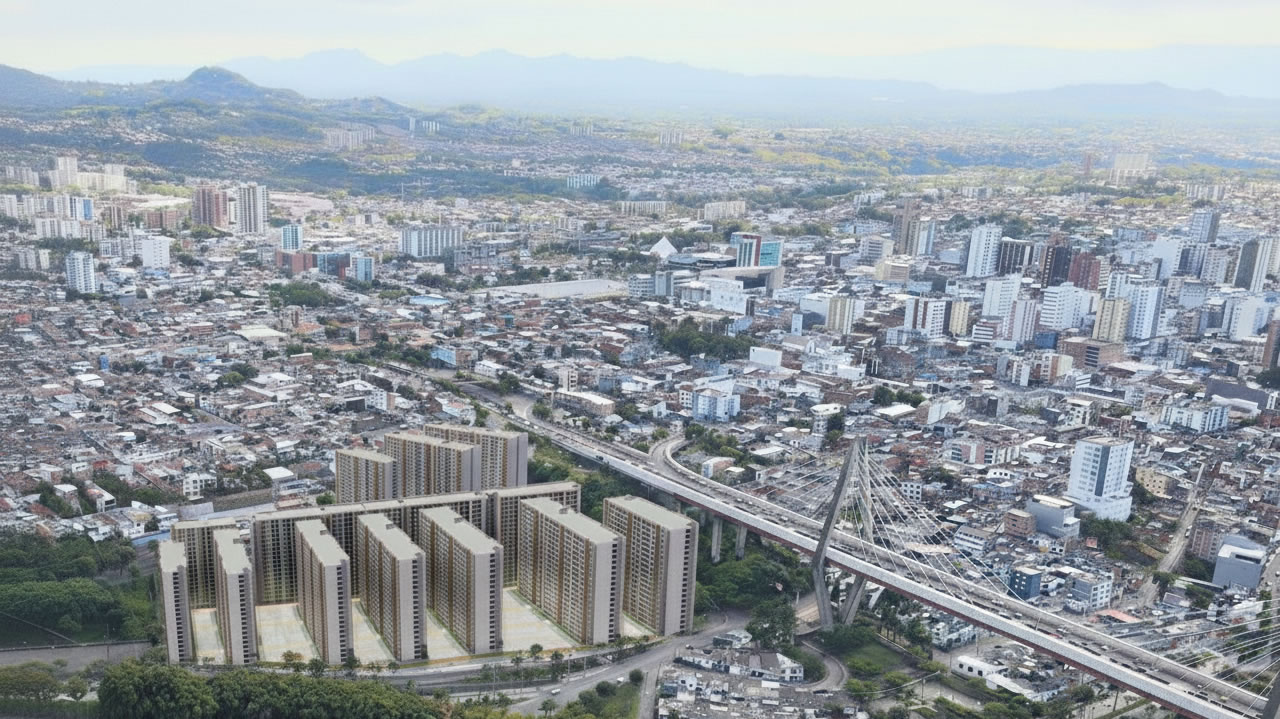 Ciudadela Torres de Bavaria: Megaproyecto de renovación urbana en Pereira compuesto por 15 torres y 3,116 apartamentos de interés social, integra amplias zonas comerciales, piscinas y áreas sociales en una ubicación con excelente conectividad y transporte masivo.